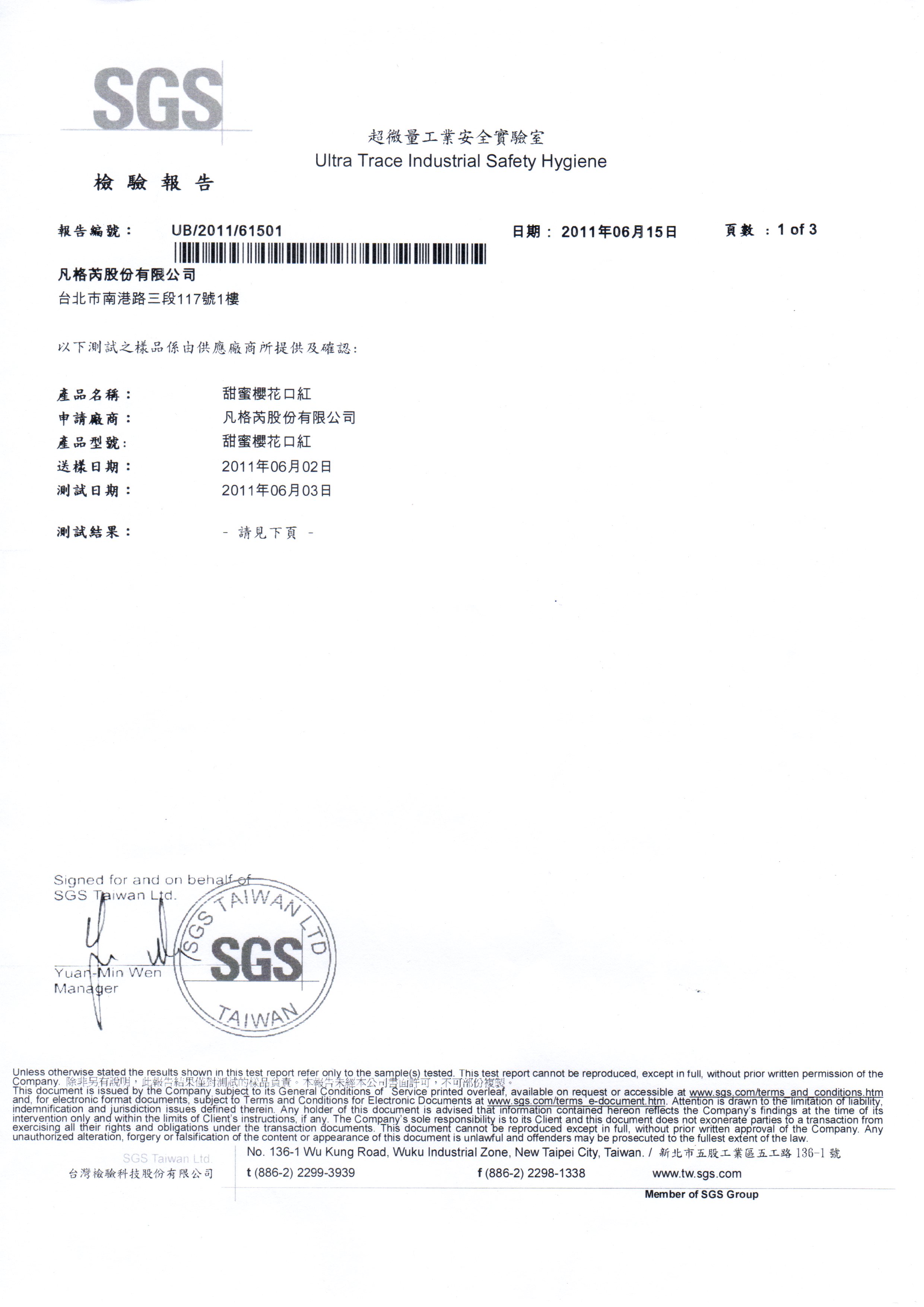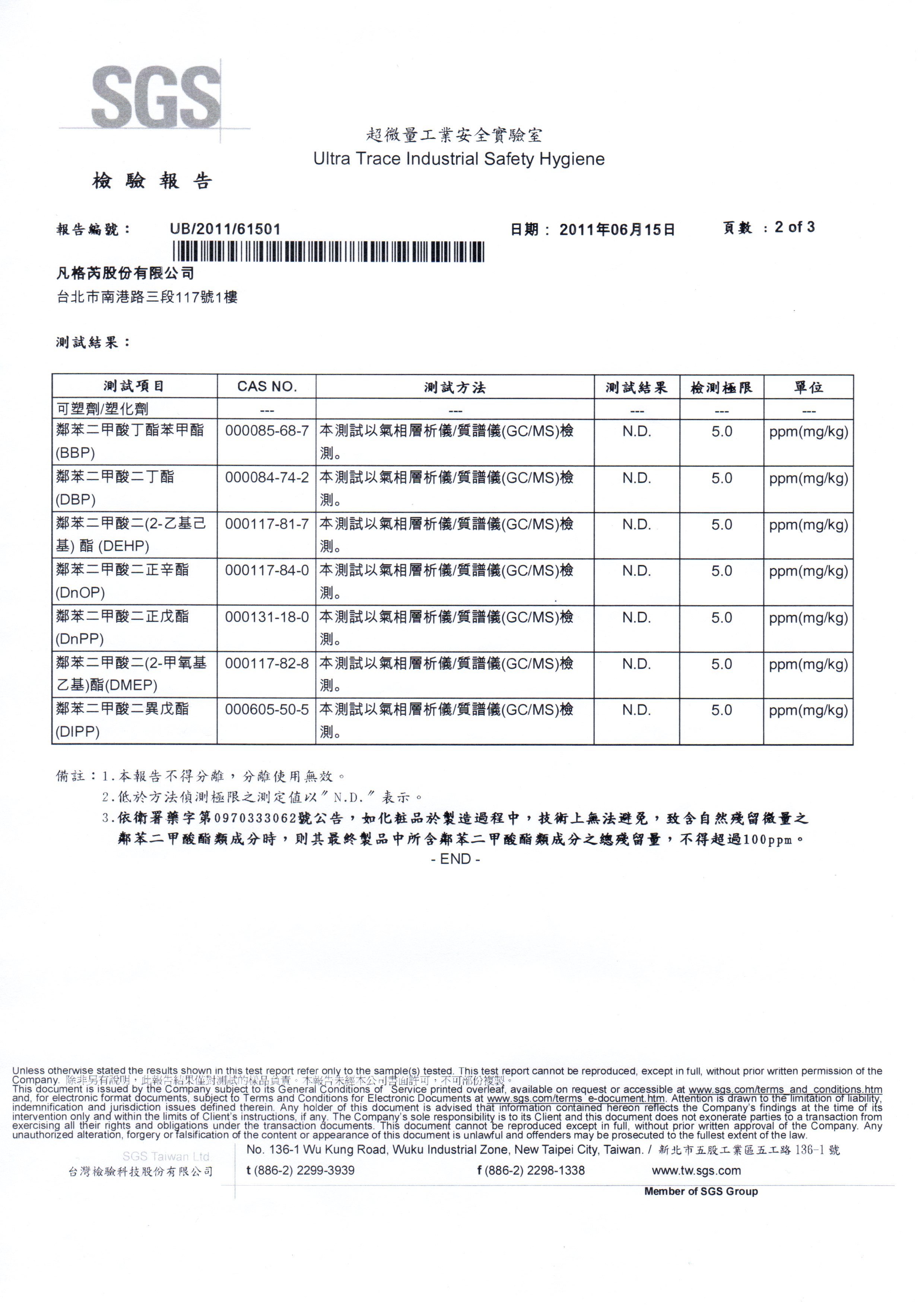 本公司產品經國家認可之檢驗機關SGS超微量工業安全實驗室檢驗合格未含塑化劑